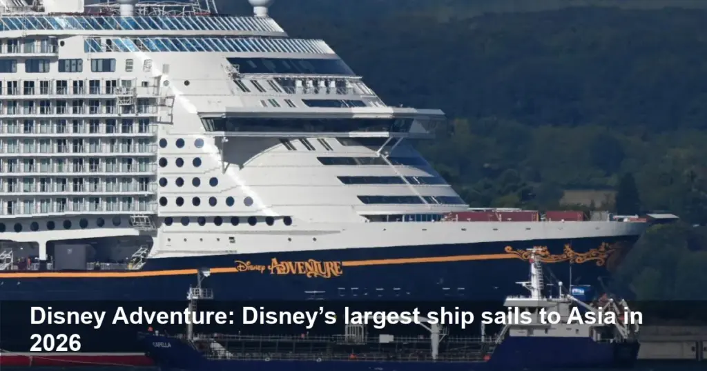 - Disney Adventure, Disney Cruise Line’s largest ship, debuts March 10, 2026, and will homeport in Singapore.