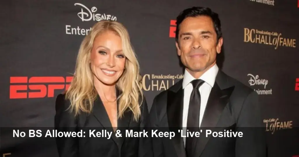 - Kelly Ripa and Mark Consuelos enforce a strict “no a——” policy on the Live set to keep energy positive.